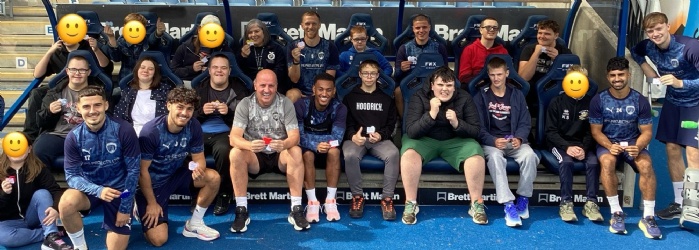 On the final day, students joined staff from Chesterfield Football Club to place the hearts on seats throughout the stadium for fans to discover. While they were working, the team manager approached the group to share how impressed he was with their efforts. As a thank-you, he arranged for the students to meet several players and have a group photo taken.