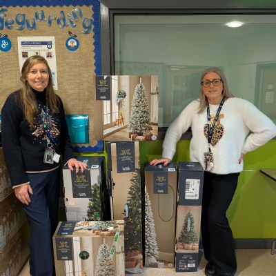 This week, two of our very own elves were hard at work delivering 22 boxes filled with food and Christmas goodies, along with 6 Christmas trees, to families across our school community.