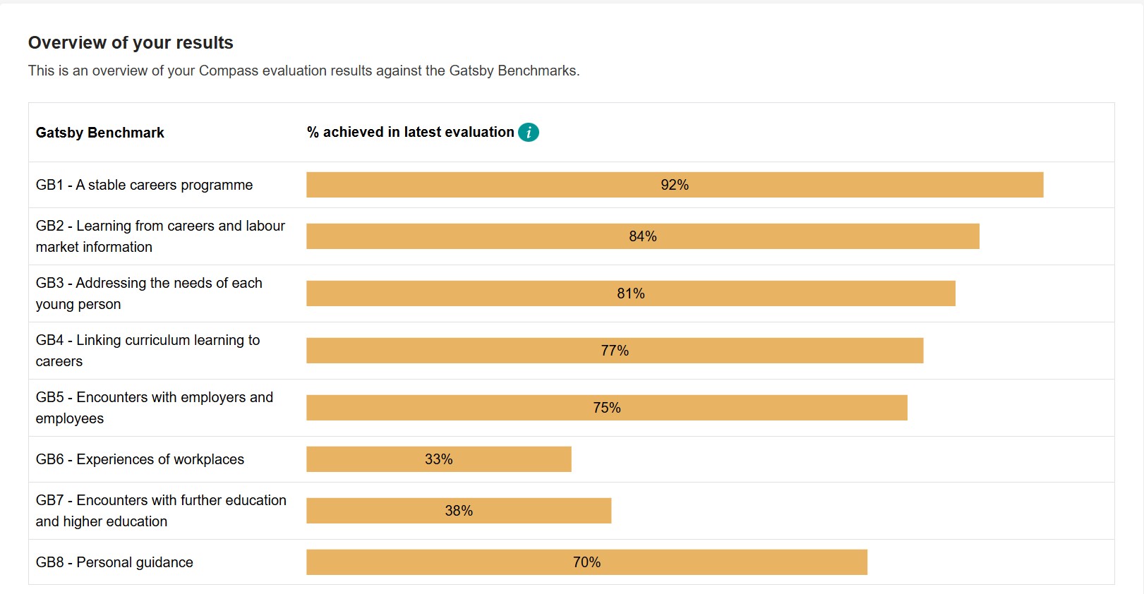 The school analyses its offer using the Gatsby Benchmarks and from these creates a yearly action plan to continually improve the Careers offer and develop the roles of staff within the school.